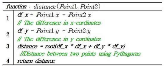 where is the epicenter of the -th actual noise and is the estimated location of the -th noise. Figure 8 shows the function to obtain the absolute error between the actual noise epicenter and the estimated location.