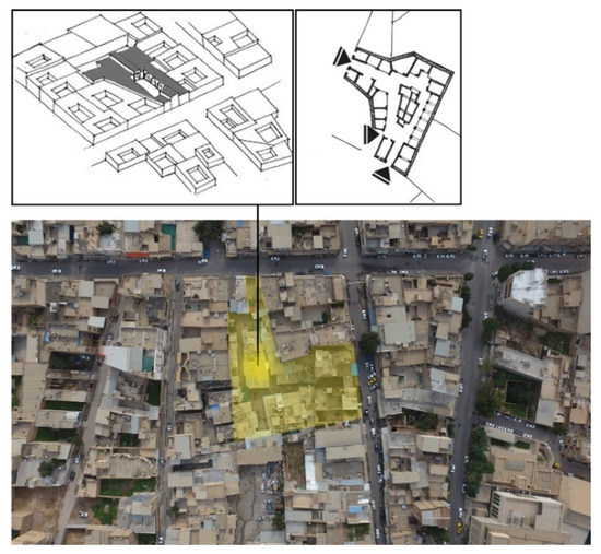 At the Qajar dynasty (1795–1925) because of the urgent need for military technology and the establishment of modern schools in Iran, the process of industrialization in Iran significantly developed, and transport infrastructures, more than 270 factories, government buildings, and national railroad were among the most critical ones. This phenomenon caused the formation of a new civil society and created notable changes in the method and process of the human life of this era through industrial structures and buildings. Therefore, almost all industrial sites and buildings of the Qajar and Pahlavi era as signs of the dominant industrial culture and the evidence of the industrialization process in Iran are known as the industrial heritage of Iran. Among different cities in Iran Dezful has an interesting story during industrialization, which makes it a great example of industrial impacts on a city, which leads to changing the image of the city. Dezful, one of the biggest cities in the Khuzestan province in the south of Iran, has been a center of governors’ attention for its climate and agricultural potentials since Qajar and the central government of Iran times [57,58]. It also had been known for its agricultural products before the industrialization process in Iran. This industry was completely traditional due to the lack of required knowledge, investment, machinery, and proper marketing. It was the time when other countries entered this region to create businesses and financial investments, hence to create jobs workshops and ranches and houses for settlement were established. These activities changed the image of the city from an agriculture city to an industrial one and made industrial culture, popular amongst the natives. As a consequence, the establishment of industrial workshops became common in Dezful. According to general definition and categorization in previous parts, industrial heritage sites of Dezful could be named as Flour workshops (Makineh Aardi), Ice workshops (Makineh Yakhi), Electricity workshops (Makine Barqi), Brick furnaces, The Old water supply, Concrete bridge of Dezful (Pol-e-Jadid or the new bridge), Facilities and settlement of Sevvom Sha’ban (English architecture) and other small buildings. Among all of these industrial heritage sites, Flour workshops (Makineh Aardi) had the strongest connection with the society, as the users of these sites, instead of industry owners and professionals, were ordinary people who came there to grind wheat regularly. As a result, the role of these sites in the historical memory of the people of Dezful is stronger than any other industrial site. The location of the DastPacheh flour workshop (Makine Aardi Dastpacheh) beside the historical fabric of Dezful at the Eastern Sahrabedar quarter caused the place a historic settlement before the industrial age. (See Figure 3 and Figure 4). This heritage inferred from tangible heritage, immovable heritage, industrial buildings, and workshops [55]. This place has turned into a fruit and vegetable market these days and is a subsidiary branch of a bazaar called Bazar-e-ruz (Day bazaar) amongst natives.