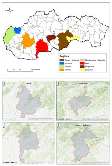 The offer of regional products in the Slovak Republic began in the 1990s through various European projects and nonprofit organizations. After the end of EU-funded projects, an initiative to implement regional brands was taken over by local action groups [23,24]. At present, the labels Podpoľanie, Hont, Ponitrie, Gemer-Malohont, Karsticum (the region of Slovak Karst in Slovakia and Aggtelek’s Karst in Hungary), Horný Liptov, Maldon-Galantsko, Kopanice, and Záhorie are used in the Slovak Republic.