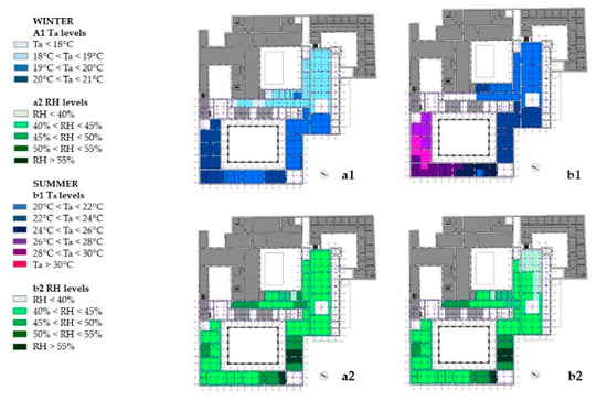 The conservation levels for each typology of artifacts are defined by national [31,32,33] and international [35,36,37,38] standards. Similarly, the comfort levels for each indoor activity refer to the existing literature and standards [40,41,52]. The compatibility between these requirements is reported below (Table 2).
