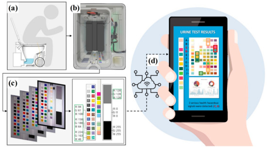 - Park, S.-M.; Won, D.D.; Lee, B.J.; Escobedo, D.; Esteva, A.; Aalipour, A.; Ge, T.J.; Kim, J.H.; Suh, S.; Choi, E.H.; et al. A mountable toilet system for personalized health monitoring via the analysis of excreta. Nat. Biomed. Eng. 2020, 4, 624–635. [Google Scholar] [CrossRef] [PubMed]