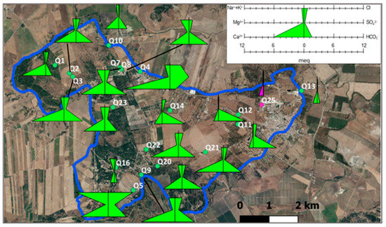 Stiff diagram displaying the groundwater facies in the sampling points.