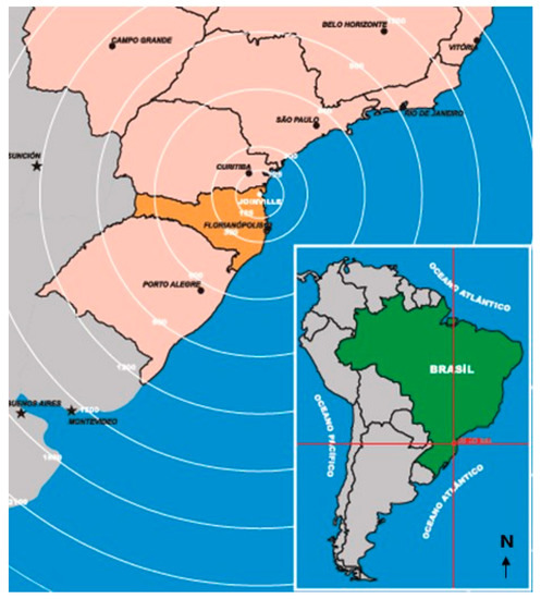 The city of Joinville is the study area. Joinville is located in the north of Santa Catarina state (Figure 1). It is the largest city in the state, and its main activities are concentrated in the industry of the metal-mechanical, plastic, and metallurgical sectors [28].