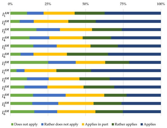 In addition to the variables mentioned above, we also considered psychological factors for our analysis. The answers to the attitudinal questions are summarized in Figure 1. In the case of the indicators describing affective motives of driving (), almost 50% of the participants agreed on all the questions. For the item only 37% of the participants agreed. Over 60% agreed with the statement: “I like to drive a car” (), where the question is general. However, for more than 30% driving a car does not mean fun or passion (). As can be seen, roughly more than 50% of the respondents rated the instrumental motives () positively. Especially for nearly 70% the function of a car was more important than the make ().