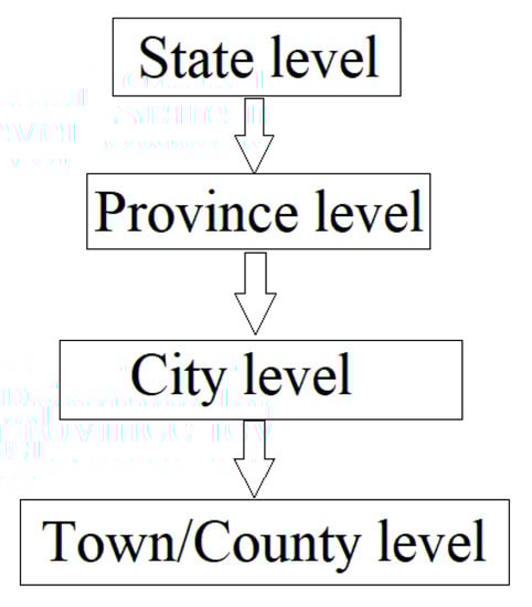 What is the effectiveness of the implementation of these new water policies in China? In a hierarchical structure, the upper level issues orders to the lower level while the lower level merely executes the commands, as shown in Figure 1. In China, water policy is implemented by the local governments but formulated by the central government, which tends to design broad policies according to their ideology and conception of the problems and then orders local governments to implement these policies [4]. Research revealed that local governments’ considerations and activities during the implementation process are complex and enhance the risk of implementation failure, even though the central government possesses absolute authority and power over their subordinates [5,6].