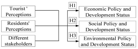 On the basis of this research framework, this study developed the following three hypotheses: (1) Residents have a Tourism and Policy Development Status of consistent awareness; (2) tourists have a Policy Development Status of consistent awareness; (3) different stakeholders have the same correct understanding of the status of cognitive tourism development.