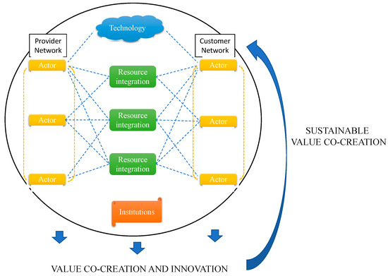 27]. Not only customers and providers, but each actor is actively involved in service-for-service exchange as part of a network in a multi-stakeholder vision. In this view, each actor can be a resource integrator then a potential co-creator. The term consumer-supplier is overcome in favor of the actor-to-actor (A2A) view.