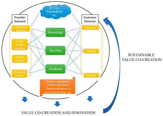 64], the work aims to configure the service ecosystem as the most suitable organizational model for obtaining the value co-creation in the digital health sector.