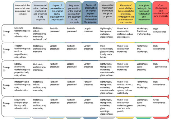 The mentioned charters on industrial heritage more closely determine the attitude towards the preservation of industrial heritage, whose complexes and buildings have significant historical, cultural, urban, architectural, memorial and technical values. Charters and guidelines related to the interpretation of the main principles of protection and revitalization of cultural heritage can be singled out, primarily the interpretation of the concept of preserving the authenticity of a monument and its monumental values, through preserving the spatial organization, structure and stylistic elements of the building. Charters have also been appointed that more closely define the approaches to preserving the intangible heritage—the spirit of the place—because such spaces preserve important evidence of social and sociocultural values, through elements of tradition, customs, and people’s way of life. It is especially important to point out the charters and guidelines related to the development of cultural tourism, as well as cultural roots of industrial heritage. The mentioned charters and guidelines in the diagram are current and recent, and the students were introduced to current international charters and recommendations in the field of preservation and protection of industrial heritage through lectures, which was a good theoretical basis for their further work on the conceptual solutions for the Mint “A.D.”. The diagram shows a relation between international documents, the principles of protection and revitalization, as well as the monumental values of the historic site. In this way, we would like to point out to all professionals and future researchers, that it is necessary to use the guidelines given in these documents, as well as to respect and preserve monumental values through valorization, with mandatory respect for the most important principles of protection and revitalization based on preserving the authenticity and integrity of the historic site. The ultimate goal should be the revival of the monument and its inclusion in modern life, while always taking into account projects that will not violate these principles, which will enable the cost-effectiveness of such interventions.