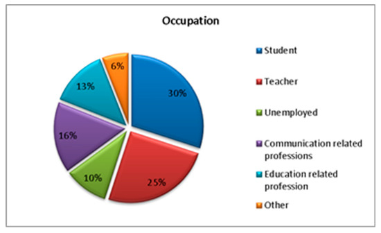 As for their occupation, the aggregated data shown in Figure 1, show a majority of students and teachers, followed by other media or communication related professions (including designers, sound engineers, communication officers, etc.) and other education related professions (youth workers, non-formal education instructor, etc.).