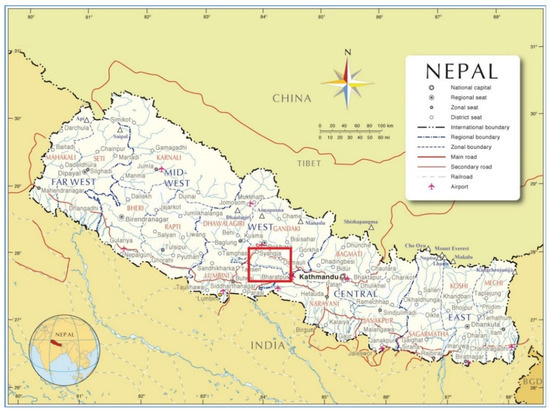 Location map of the study area (in red box) in central hill districts of Nepal.