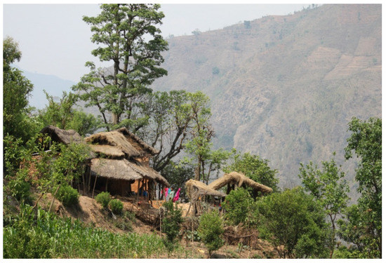 Being situated in the foothills of Himalaya, Nepal is one of the most vulnerable countries due to global climate change [17,18]. In recent years, extreme climatic events like drought and excessive rainfall have directly influenced the livelihoods and land-use of rural upland communities in the country [19,20,21]. At the same time, land scarcity and labor-intensive agricultural production systems are common throughout the country, challenging the life and livelihoods of thousands of smallholder rural farmers [22]. In Nepal, most of the people live in the country’s middle hills with 95% of the population still engaged in subsistence agriculture for their living [23]. Swidden, locally termed as bhasme or khoria-kheti, is a common land-use practiced by at least ten indigenous communities in nearly twenty districts in Nepal [24]. Accordingly, many rural households largely depend on swiddening for food security and to meet local dietary needs [21]. Swidden cultivation in Nepal, however, is different from those prevailing in other countries of the humid tropics due to the country’s unique geo-climatic conditions (Figure 1) [22]. Unlike other parts of South and Southeast Asia, in Nepal, seasonal rainfall combines with high elevation, steep terrains, and fragile soils characterized by frequent landslides, erosion, and a high amount of rocks in the soil [20].