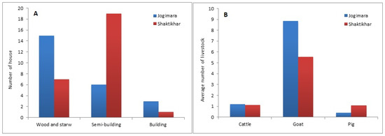 Housing condition (A), and livestock resources (B) of the Chepang farmers in the central hill districts of Nepal.
