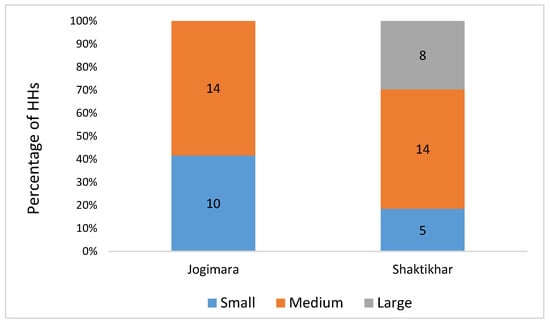 Figure 5, below, shows the number of Chepang farmers who fell into the small, medium, and large landholding categories, respectively, based on their total landholdings (i.e., the sum of land under swidden, sedentary agriculture and other land-uses/cover). Farmers did not hold any legal land titles of the areas they used for swidden agriculture in our study villages. Within the communities, however, informal usufruct rights were recognized in such a way that members from the community were aware of one another’s swidden areas and did not infringe on or enter other people’s swidden fields uninvited.
