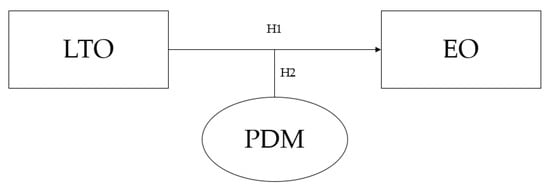 In sum, PDM can be seen as a moderating variable that strengthens the LTO-EO relationship by enhancing managerial commitment [18] and reducing potential relational conflicts among managers [19]. Hence, we postulate that the interaction of LTO and higher levels of PDM will positively affect a family firm’s EO. Formally: