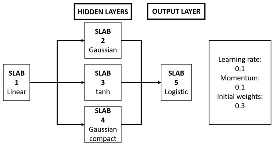 Regarding the number of hidden layers, initially it was selected according to the literature [45,46,47] and empirically, on the basis of previous experiences [15,16], then 10 different configurations were tested and the one giving the best results was chosen. As with any optimization procedure, the question arises whether the selected network architecture is a local or global optimum. Given the learning outcomes and their practical application, this question was not focus of our further research.