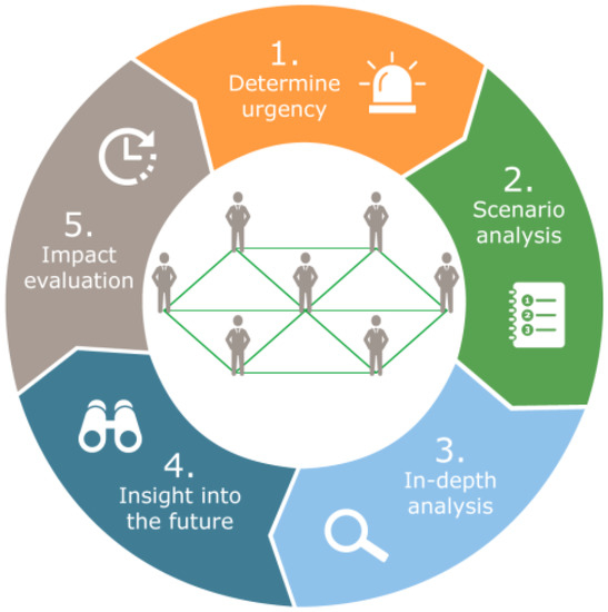To progress from a sense of urgency towards a (shared) vision for food secure cities, deliberation with stakeholders is of vital importance [34]. In this, stakeholder-based scenario, analyses can lead to a better understanding of the issues at stake and open up discussions about potential futures and the changes that are required to come to a new urban food system [47]. In this second step, several scenario-based decision support tools can therefore be used to gain insight into potential futures [31] and facilitate discussions about desired views. By projecting different options and analyzing scenarios, the desirability of future developments can be discussed with stakeholders, including an assessment of potential courses of action towards their ideal futures.