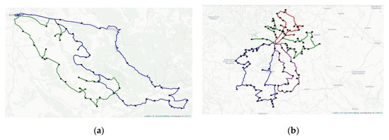 Fixed routes performed every week (a) Burgos (b) Soria.