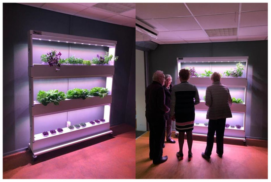 Besides these advantages in terms of efficiency, continuity and limited pesticide-use, high-tech indoor gardens can also function as a form of ′indoor greening’ in nursing homes. Indoor greening contributes to the perceived environmental ambiance of a room [12,13,14] as natural elements in the built healthcare environment reduce feelings of stress [15]. Indoor plants can also improve climate [16] and air quality [17]: they balance the humidity of the air, clean the air and create a comfortable environment in nursing home settings by removing harmful substances, such as from urine losses and chemical detergents [18,19]. Furthermore, indoor gardens can enhance the lighting of a location and improve the aesthetics of the indoor space [20]. Different studies therefore confirm that (vegetable) gardens in health care settings can improve health, wellbeing and life-satisfaction [21,22,23,24].