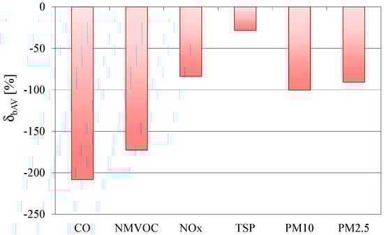 - The relative reduction in national annual emission is the greatest for carbon monoxide—almost 120%—and for non-methane volatile organic compounds it is almost 85%. The relative increase in the national annual emission of nitrogen oxides is equal to about 25%, and the total particulate matter—almost 75%—including the PM10 fraction—over 60%—and PM2.5—about 50%. The results of the relative reduction in the emission of the particle size fraction confirm the fact that reducing the emission of particles from sources other than the exhaust system of internal combustion engines is one of the most difficult technical tasks.