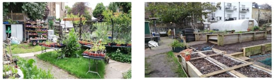 These intangible outputs, the multiple social benefits of community gardens, are much quoted in the literature. These spaces bring people together to work with one another, helping them to overcome loneliness and exclusion, to develop a skill as well as generating feelings of happiness and a sense of self-worth [6,7,8]. Gardens provide training opportunities for people of all ages and from all backgrounds as well as being able to help educate younger members of society in the origins of the food on their plates. Community gardens break up so-called food deserts, allowing local populations to access previously unavailable healthy food and school children to try foods that they would perhaps have not have chosen without the education or improved accessibility [6].