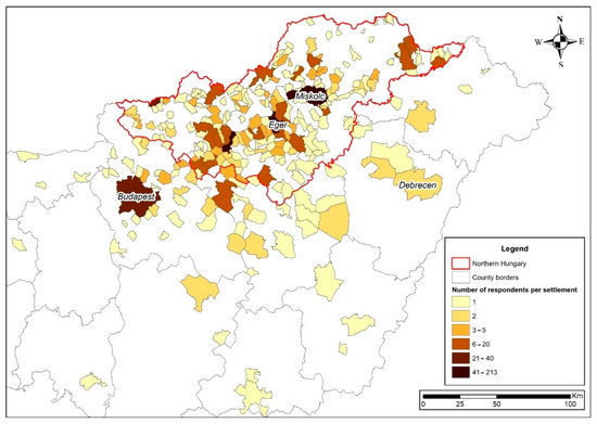 As already mentioned, 86% of the 1034 responders originated from the settlements of the North Hungarian region (Figure 1).