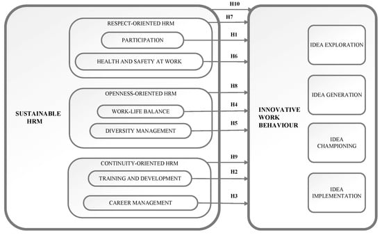 Sustainable HRM will be positively related to innovative work behaviour, in terms of idea exploration (H10a), idea generation (H10b), idea championing (H10c), and idea implementation (H10d).