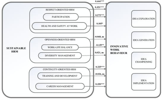 Organisations are able to stimulate the desired behaviours by using sustainable HRM practices that encourage the desired behaviours [38]. Based on the ideas of social exchange theory [113] and signalling theory [114], employees are seen as perceiving HRM practices as signals of the organisation [5]. If employees treat HRM practices as providing value, they will feel obliged to reciprocate with something of value [38]. In such case, if employees feel that HRM reflects respect, openness, and continuity, they will be willing to demonstrate extra-role behaviour, in terms of innovative work behaviour. Summing up, the general hypotheses are proposed as follows: