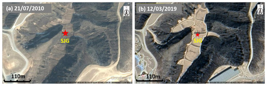 Satellite images of Shijiagou (SJG) gully (a) before and (b) after GLC.