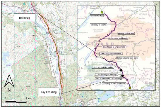 - Transport Scotland. A9 Dualling Programme: Tay Crossing to Ballinluig DMRB Stage 3 Environmental Statement. Available online: https://www.transport.gov.scot/publication/draft-orders-and-environmental-statement-a9-tay-crossing-to-ballinluig/ (accessed on 7 September 2019).