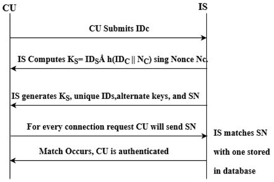In the registration phase, whenever a new CU joins, it has to submit its identity to IS. IS, further using its own identity, the identity of CU and a nonce value, computes a secret key KS, along with unique IDs, alternate keys, and a unique sequence number for that particular CU. Every time a connection request is made by CU to IS, the sequence umber of CU is matched with the one stored in IS. If a match occurs, CU is authenticated at the server otherwise it makes use of alternate keys for proving its identity to IS.