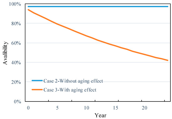 It is clear from Table 3 that without consideration of the aging factor, the reliability of the RES does not vary significantly. However, the availability shows a significant variation ranging from 0.40 to 0.95 for generation units.