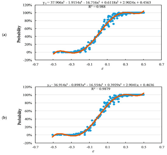- Case 2: y2 = 37.906x5 − 1.9154x4 − 16.716x3 + 0.6118x2 + 2.9024x + 0.4563; −0.5 < x < 0.5 (R² = 0.988);