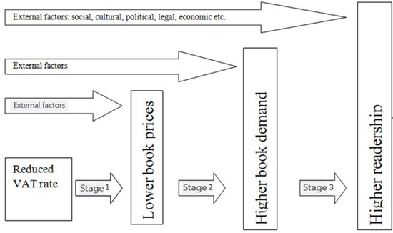 The purpose of this article is to look at three-staged pattern of relationship between reduced VAT rate and its final cultural policy outcome of the formative origin, that is, higher level of readership. The article offers some new contours for researching indirect state interventionism and its effectiveness by proposing a unifying framework that allows understanding this correlation.