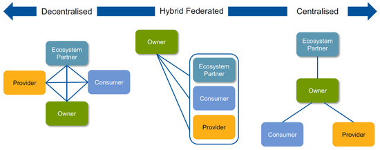 Following the ecosystem of the platform strategy, the role of the provider (government) and consumers (citizens) can be shifted based on the issues and the situation [18]. Masson & Ward suggested four platform models (the government platform, peer platform, ecosystem platform, crowdsourcing platform) of public services that utilize communication channels and ecosystems [28]. According to Gartner’s report, more than 80% of digital government implementation is not built on a technology platform that will fail to meet its objectives by 2023 [29]. GaaP can also help citizens improve productivity, decision making, and well-being. The government is not responsible for the results of their activities but can leverage its platform and influence to foster higher public value [30]. Gansen et al. suggest four types of participants in the platform governance model [2]. Figure 2 shows the three platform governance models based on the structure of four stakeholders: Decentralized, Centralized, and Hybrid Federated.