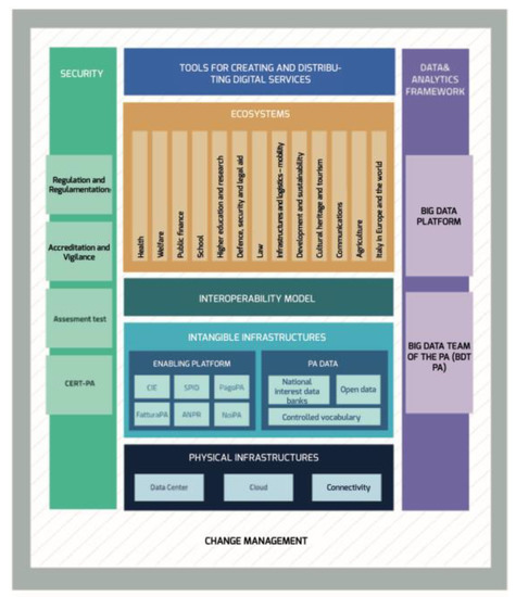 - Italia Three-Year Plan for ICT Release 1.0. 2020. Available online: https://docs.italia.it/italia/piano-triennale-ict/pianotriennale-ict-doc-en/en/stabile/doc/02_modello-strategico-di-evoluzione-dell-ict-della-pa.html (accessed on 3 July 2020).