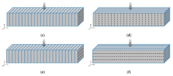 Like compressive strength, flexural strength of printed components is also determined by loading directions, due to the anisotropy introduced by the 3D-printing process. From the authors’ perspective, there are six different directions for investigating the anisotropic flexural bending behavior of printed prisms (shown in Figure 8). However, it should be noted that most studies [,,,,,] focus on three loading directions rather than six, and some researchers [,,,,,,,] only considered two directions or even one direction. These simplified conditions might be simple in terms of the testing procedure, but are limited for analyzing the anisotropic property. More comprehensive research is required to evaluate the mechanical properties of 3D-printed prisms in all six directions, particularly for a prefabricated component that can be placed in any arbitrary direction.