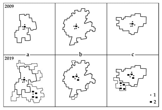 Evolution of the number of settlements in the study area between 2009 and 2019.