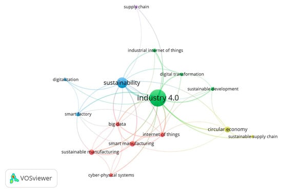 Cluster 4 explains the relationship between Industry 4.0 and circular economy (CE). Paper [72] contains a pioneering roadmap to enhance the application of CE principles in organizations due to I4.0 approaches. Possibilities of CE support through digital technologies are presented in [25]. The article [84] presents an eco-project related to the use of Internet of Things (IoT) and I4.0 technologies as an effective methodological approach for developing products compatible with the principles of the CE. The opportunities of I4.0 support for remanufacturing and CE acceleration are described in [85]. The cluster also discussed the issues of production planning and control based on Industry 4.0 technologies. A mathematical programming model [86] with activity-based costing (ABC) and theory of constraints (TOC) maximizing profit and reducing carbon dioxide emissions, energy recycling and reuse of waste simultaneously was developed. This model using I4.0 techniques was empirically verified in the paper industry [87] and textile industry [88].