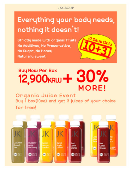 Two questionnaires were prepared for study 2. An advertising campaign for an imaginary juice product, which represents a new product, was created as an experimental stimulus as shown in Figure 3. This advertising was shown to questionnaire 1 participants, whereas such advertising and five positive consumer reviews were shown to questionnaire 2 participants to reduce quality uncertainty. The questions in study 1 were used to check the manipulation of difference in quality uncertainty level. The negative effect of price-related promotion is less for value-added promotion compared with direct price discount [13,31], and a juice product is a low involvement good with a short shelf life. Therefore, repeated promotions may be needed as the expiry date approaches. Following study 1, a value-added promotion with 30% more was chosen.