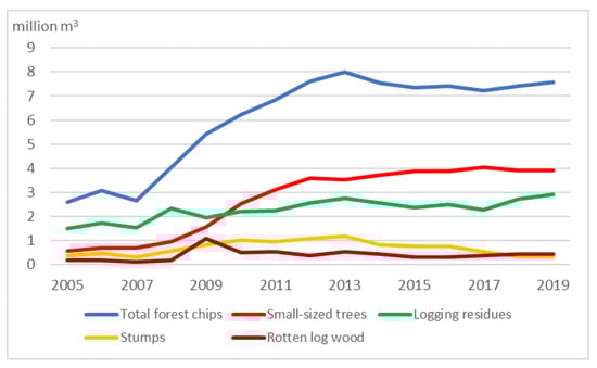 - Wood in Energy Generation 2019. Natural Resources Institute Finland. Available online: https://stat.luke.fi/en/wood-energy-generation-2019-provisional_en (accessed on 23 June 2020).