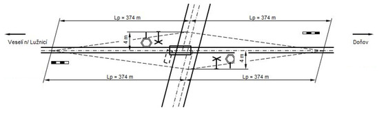 45], who analysed critical points in the region of South Bohemia. In particular, he put the spotlight on one level crossing from 1950, which only features warning crosses and the P6 warning sign, with a line speed of 100 km/h, which is permissible under Decree 177/1995 Coll. on the basis of § 88. [