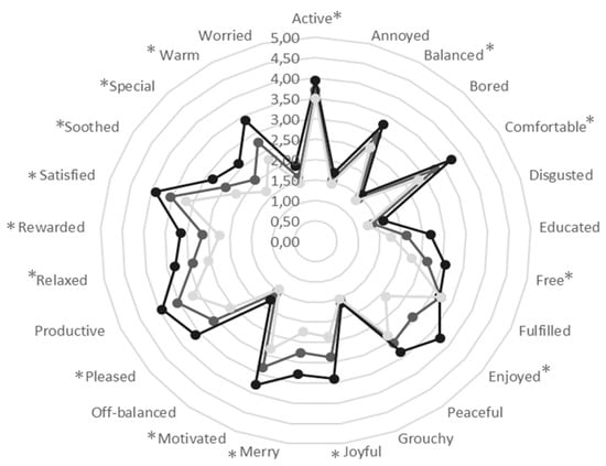 - Schouteten, J.J.; De Steur, H.; De Pelsmaeker, S.; Lagast, S.; De Bourdeaudhuij, I.; Gellynck, X. An integrated method for the emotional conceptualization and sensory characterization of food products: The EmoSensory® Wheel. Food Res. Int. 2015, 78, 96–107. [Google Scholar] [CrossRef]