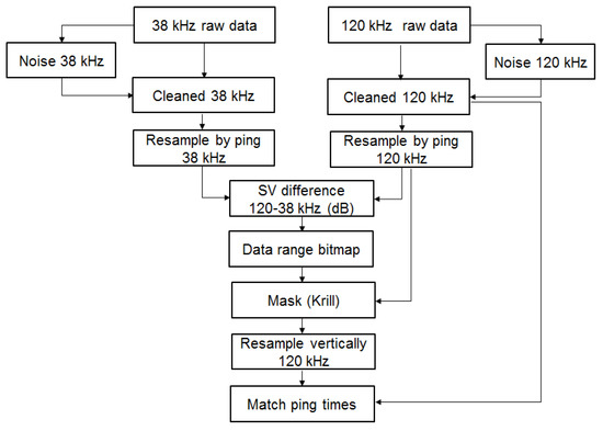 Flowchart for processing the dB differences for Antarctic krill at 38 and 120 kHz [15].