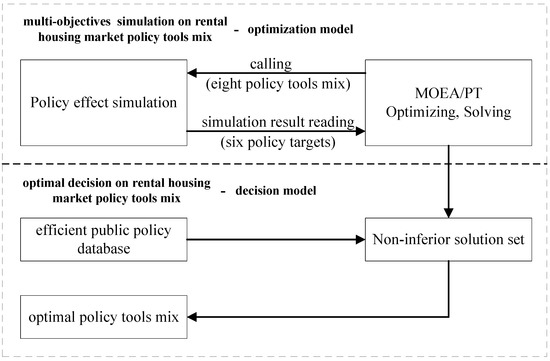 Section 2 summarizes literature related to this research, including policy design and multi-objective optimization algorithms. Section 3 summarizes the related theories and methods of multi-objective optimization functions and algorithms. Section 4 analyzes the goals of cultivation policies on rental housing markets, refines the main policy aims to form an objective function, and establishes constraint functions (for the supply side, demand side, external environment, and combinations). Section 5 creates a two-phase MOO algorithm based on the Pareto dominance relationship. Section 6 explains a solution of policy tool mix for a rental housing market using a multi-objective-optimization evolutionary algorithm with the Pareto approach (MOEA/PT). The last section contains conclusions from the results and sets out proposed directions for future research.