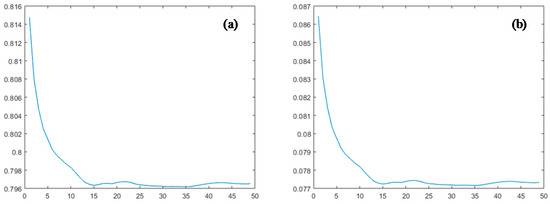 (a) Convergence curve of objective 7; (b) Convergence curve of objective 8.