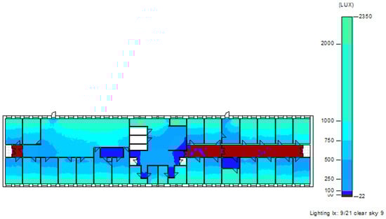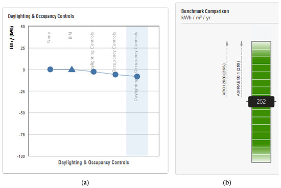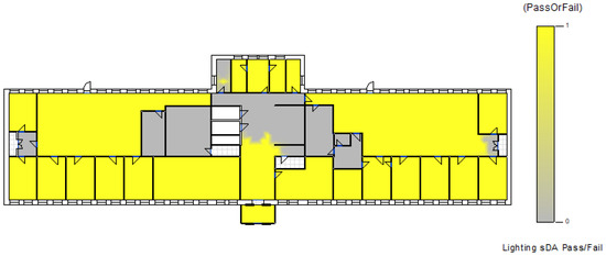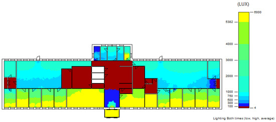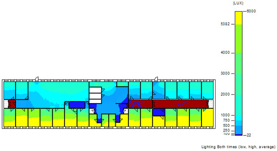 Specifically, in terms of lighting buildings, the BIM methodology allows studying the necessary light levels for the comfort of the occupants to ensure they are met, and by simulation of the energy model, the possibility of improving efficiency can be studied from various perspectives, such as lighting equipment consumption, occupancy control, daylighting, building orientation, and ratio of the glazed area on walls. Unfortunately, these latter two options are usually not viable for building rehabilitation. On the other hand, it must be taken into account that the rest of the measures are easily applicable to hospital buildings without interfering with their continuous activity, in addition to being amortizable investments in the short term, compared to other measures to improve energy efficiency in hospital buildings [44]. In this sense, there are very interesting works aimed at taking advantage of simulated lighting data using Building Information Modeling (BIM) of a building, which are key to improving the building’s energy and light efficiency allowing the designer to simulate strategies for saving and simulate control of lighting savings [47]. It is possible to analyze the improvement in visual comfort for the renovation of the building, using Building Information Modeling (BIM) and parametric environmental analysis tools. The building model is exported to Computer-Aided Design software to execute parametric daylight analyses through environmental simulation soft [48].