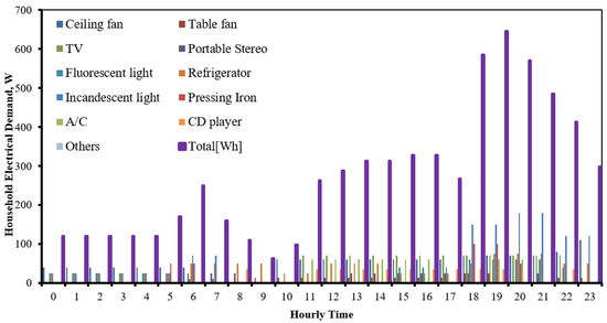 Electricity is generally required for refrigeration, lighting (especially at night), pumping of water from bore holes, hair care, laundry, cooking (electric cookers/ stoves/gas/heater) and other domestic uses. However, the focus of this work is to meet the energy demand of an average household. The hourly energy requirements for household appliances can be computed using Equations (1)–(3) according to reference [36].