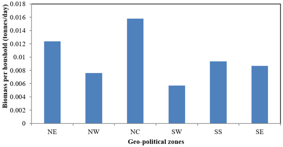 The population size and average household size of the six geopolitical zones in Nigeria are presented in Table 1. These data are used to obtain the daily biomass resource per household in each of the zones.