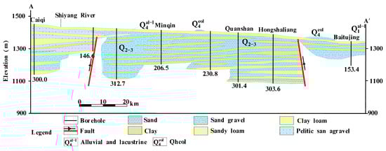 29]. The aquifer is a multi-layer unconfined-confined system. Moreover, along the direction of the groundwater flow, the water yield of the aquifer changes greatly [